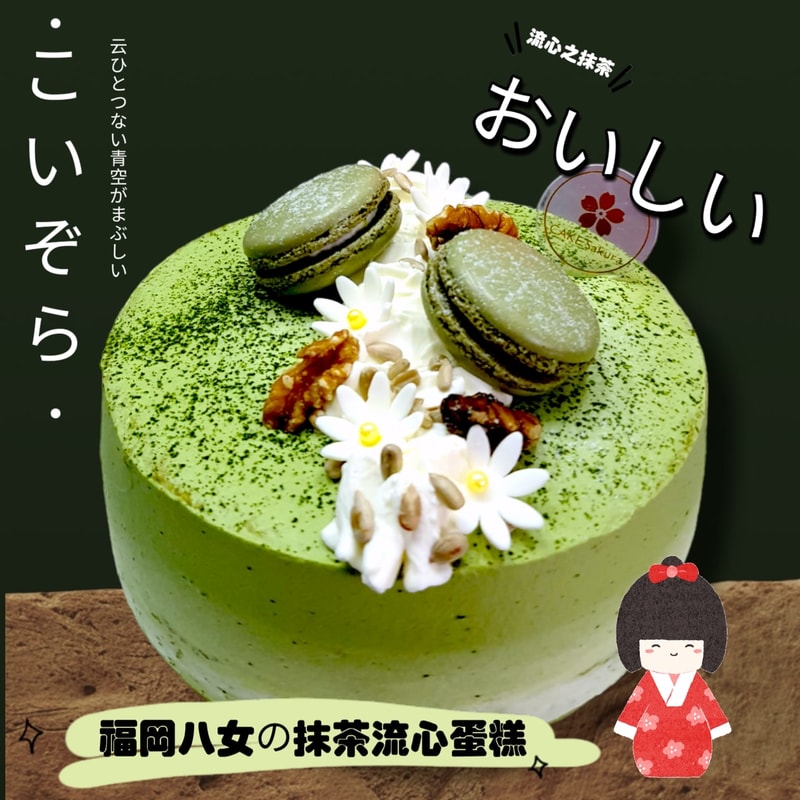 Cake Sakura 嘅福岡八女の抹茶流心無糖蛋糕其特色是粉香醇厚、茶湯濃醇!