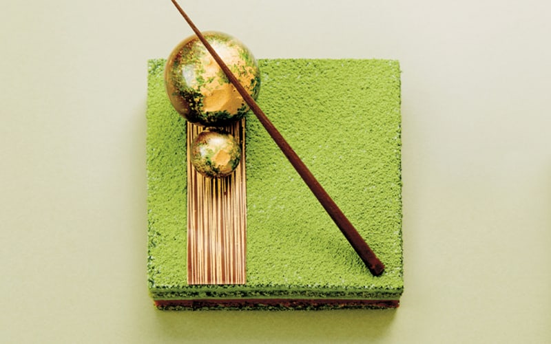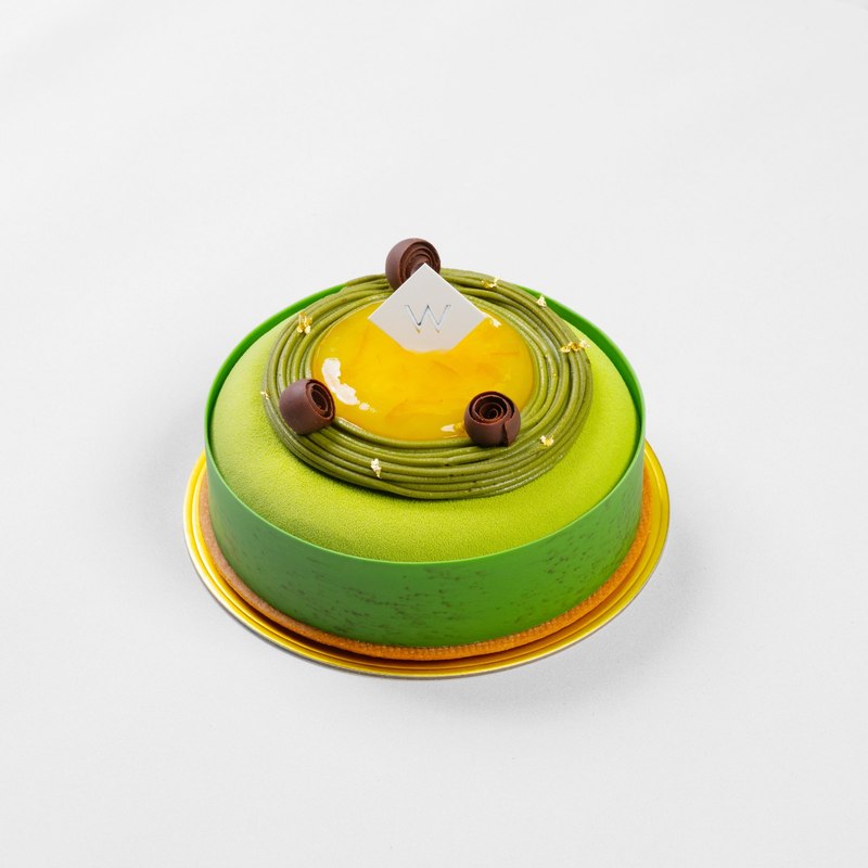香港W酒店呢款抹茶麻糬柚子蛋糕巧妙結合抹茶慕絲、自製Q彈麻糬、日本柚子皮果醬與宇治抹茶蛋糕底。