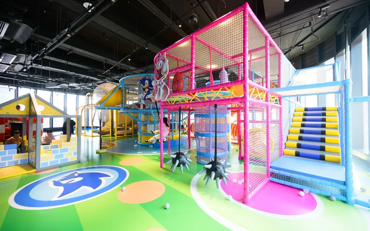 樂園有 4 大必玩關卡,小朋友可以穿越小象 Eli 嘅波波池探險屋、攀爬糖果山攀爬牆,然後爬上薑餅屋呢個近 4 米高嘅位置,