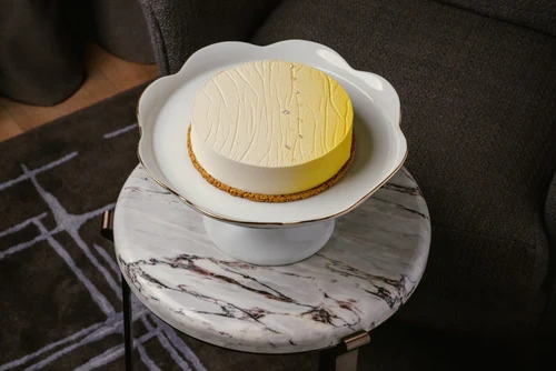 蛋糕表面塗上一抹鮮艷的黃色,令整體視覺更搶眼,入口清新又幼滑,適合喜歡清爽花香味的甜品愛好者。