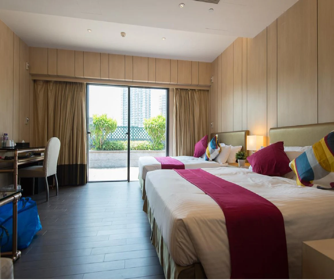 酒店內部設施齊全,有多款房型選擇,包括豪華雙床房、特級豪華房、四人及八人家庭房,無論你係情侶定成家出動都搵到啱房。