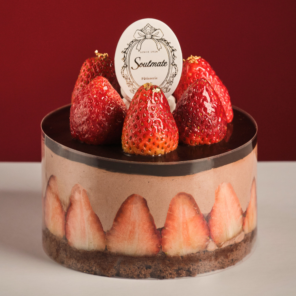 頂層淋上法國的朱古力醬,再配上日韓士多啤梨,帶來奢華與清新交織的極致享受