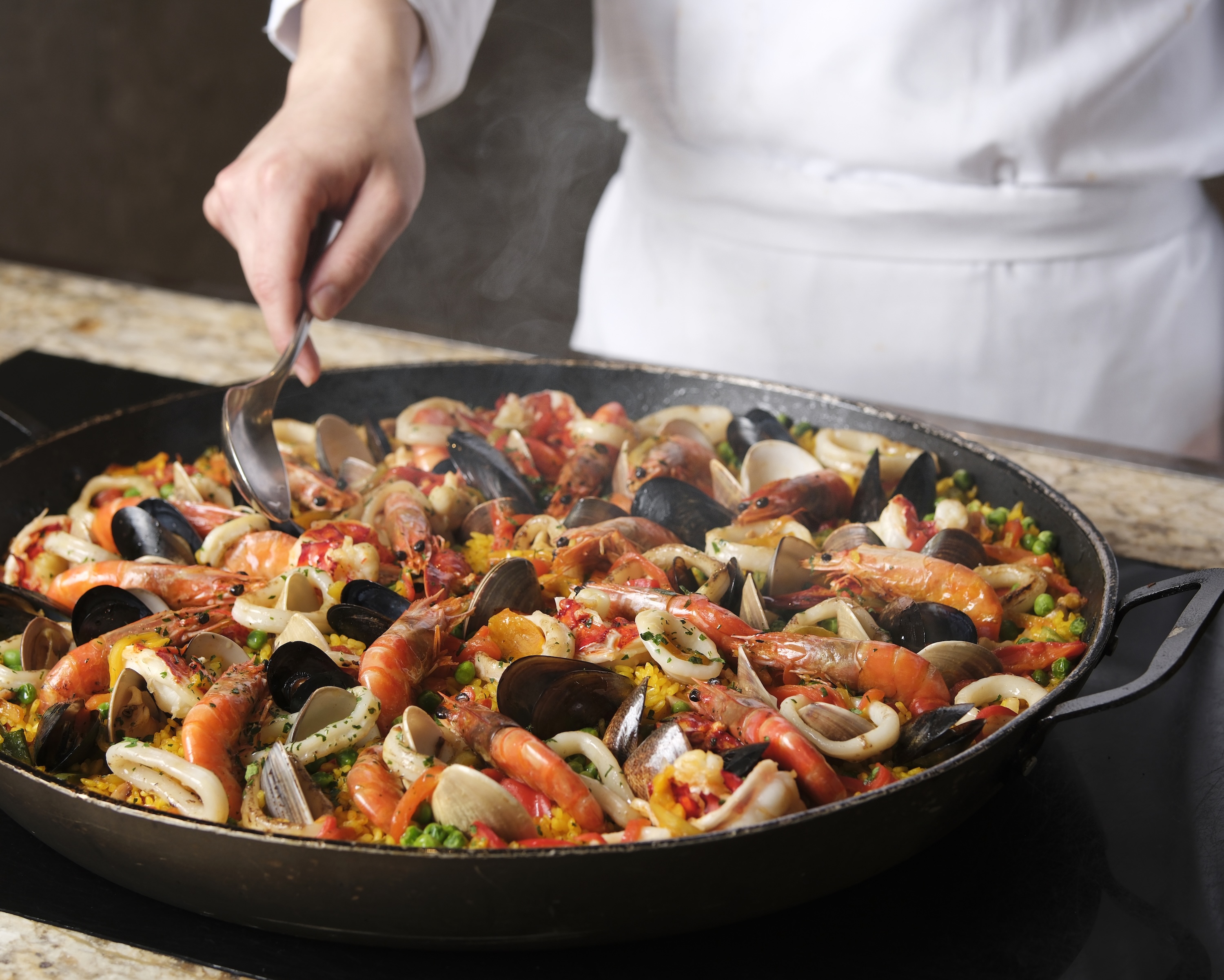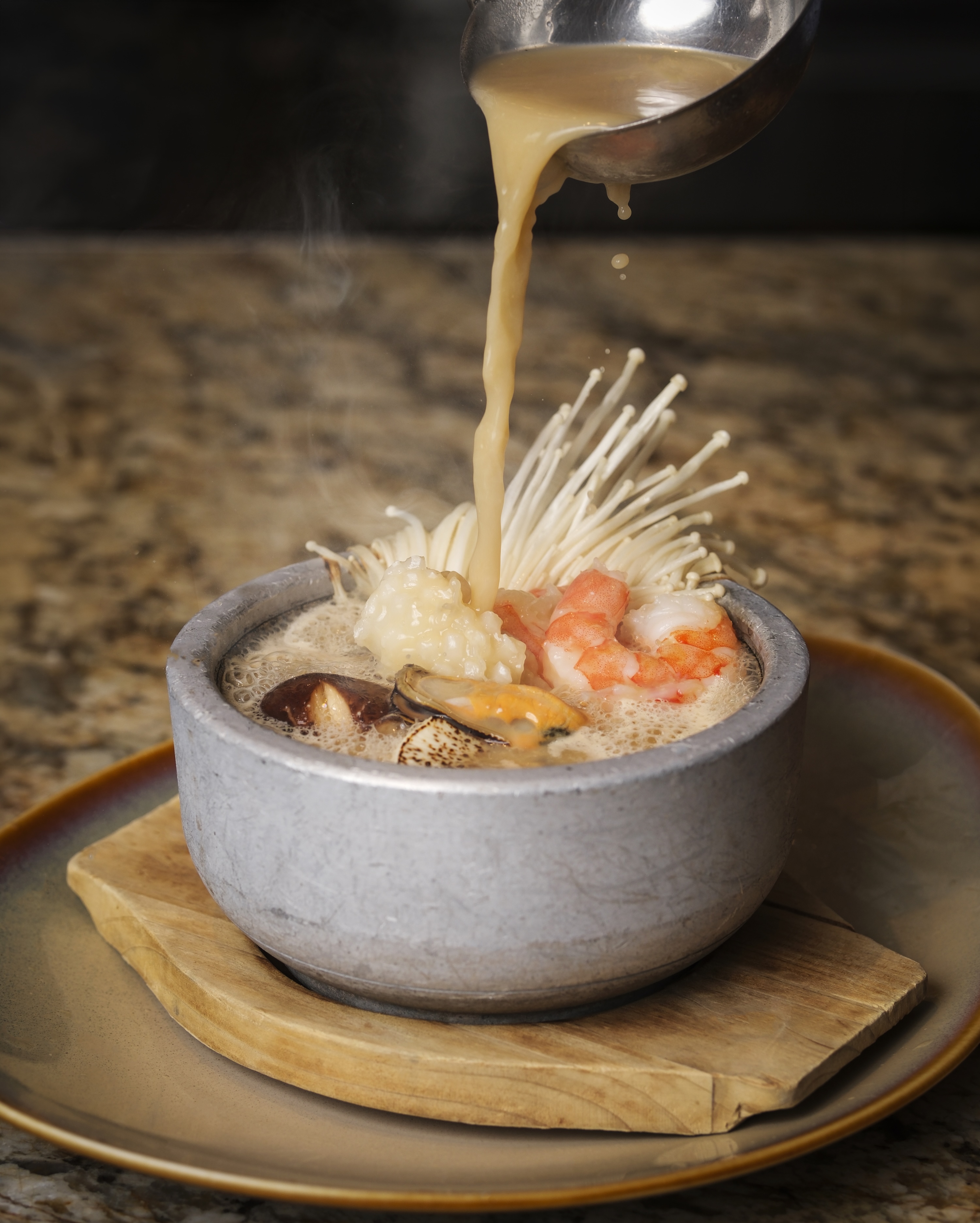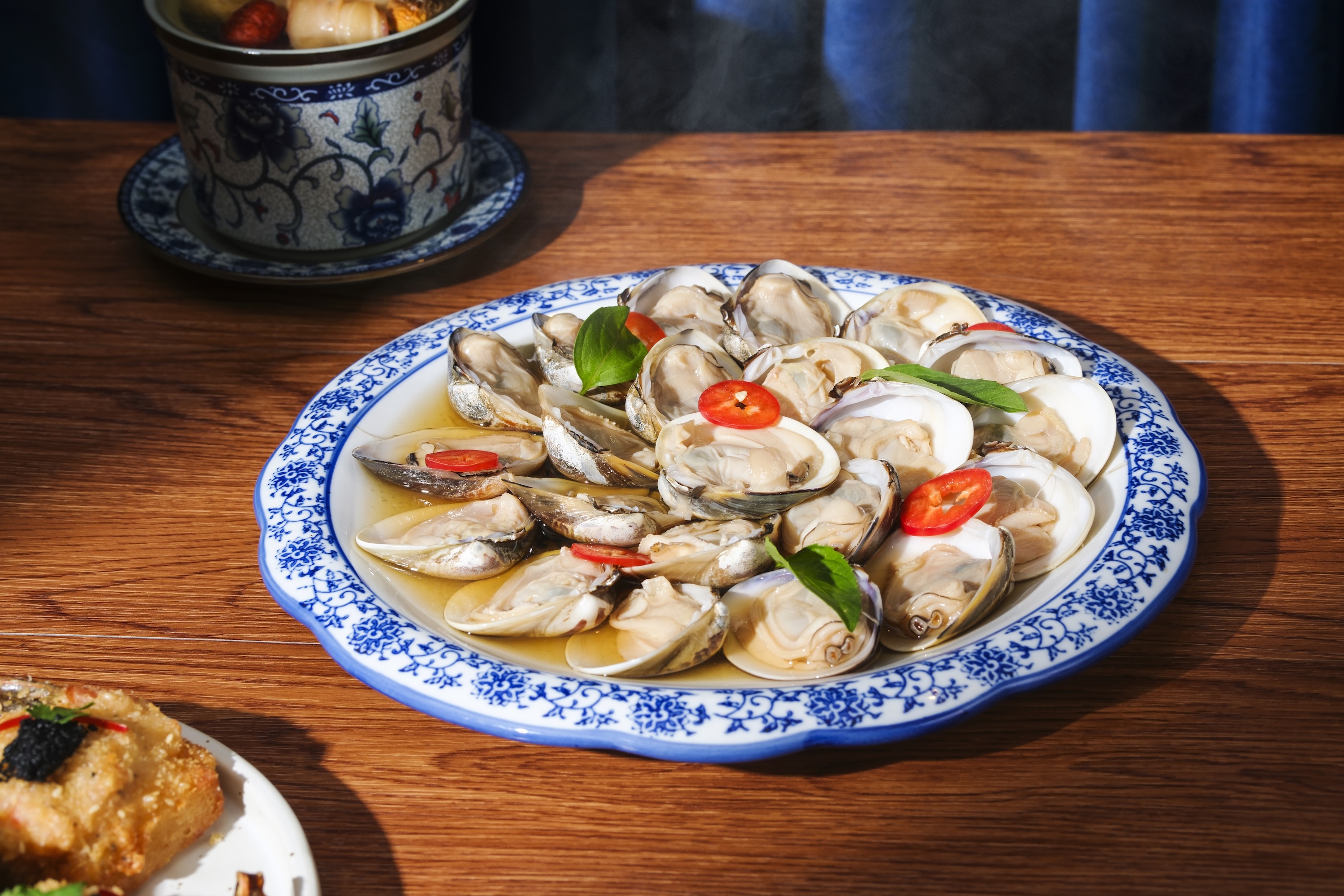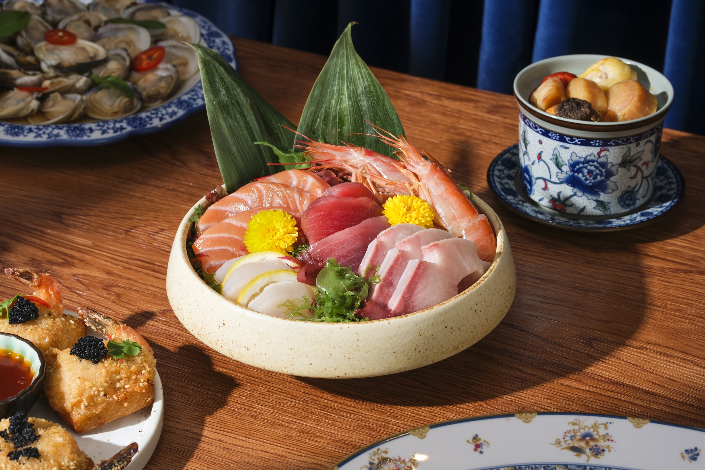 廚師團隊精心研創一系列全新菜式,以嶄新風味為盛宴再添驚喜亮點。潮式魚露浸沙白以香醇潮式魚露烹調,沙白嫩滑鮮甜,鹹鮮滋味令人一試難忘;螺頭瑤柱燉雞湯慢火細燉,湯底醇厚甘美,滋補暖心;松露蝦多士外表酥脆內裡爽彈,松露香氣濃郁;冬陰浸蜆酸辣開胃,南洋香料芬芳撲鼻,令人食慾大振;四川口水鮮魷麻辣鮮香,爽彈魷魚配上秘製口水汁,叫人欲罷不能;西班牙海鮮飯加入蝦、蜆、魷魚等豐盛海鮮配料,地中海風情躍然盤中;泰式蜆肉生菜包以脆嫩生菜包裹鮮甜蜆肉,佐以泰式香料提味,口感層次豐富;而即叫即製的海鮮豆乳熱石鍋更是不容錯過,滾燙石鍋完美鎖住海鮮鮮甜,熱氣騰騰,香氣四溢。其他矚目推介還有薑蔥炒龍蝦鉗、馬頭立鱗燒、花雕雞油蒸原條海鱸魚、紅燒花膠伴蝦籽麵、蒜蓉牛油大蝦、蒜蓉粉絲蒸扇貝、川味酸菜魚及韓式燒魷魚等,每一道皆令人回味無窮。最後,以新鮮製作的雞蛋仔、焦糖布甸及多款意式雪糕為盛宴畫上甜蜜完美的句號。