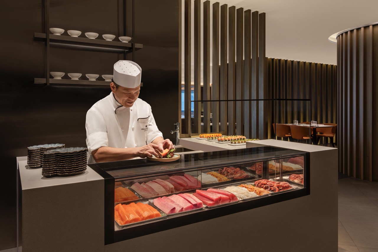 城中著名的自助餐餐廳JW咖啡室每天選用頂級食材,為食客炮製豐富的自助午餐。滋味美食包括新鮮海鮮如雪蟹腳、花螺及海蝦、清新冷盤和沙律、日式手握壽司和刺身、亞洲和國際特色美食,以及誘人甜品等。