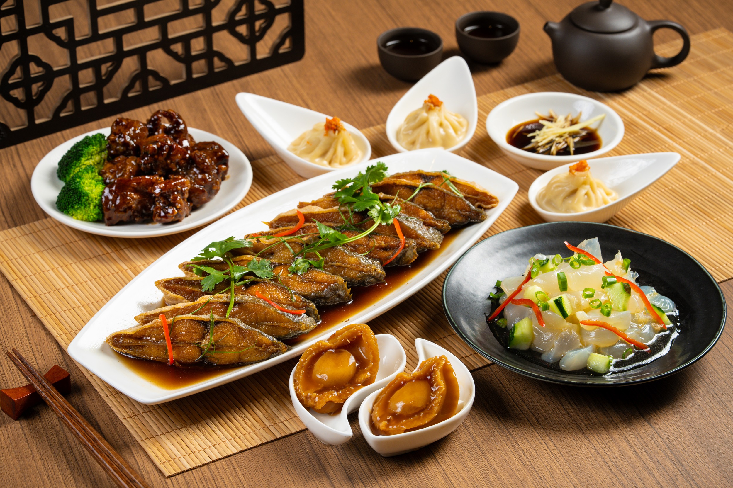 農曆新年限定 “只限2月15至23日供應 “ - 橫財就手 (南乳炆豬手), 鴻運當頭 (紅燒獅子頭), 年年有餘 (甜酸炸銀花魚), 滿獎金錢 (蠔皇冬菇炆鴨掌), 嘻哈大笑 (蜜豆炒蝦仁), 發財好市大利湯, 甜蜜滿載 (特濃朱古力慕絲脆脆蛋糕), 福運連連 (雲呢拿士多啤梨慕絲蛋糕), 圓滿幸福 (椰香芋圓雪燕糖水)