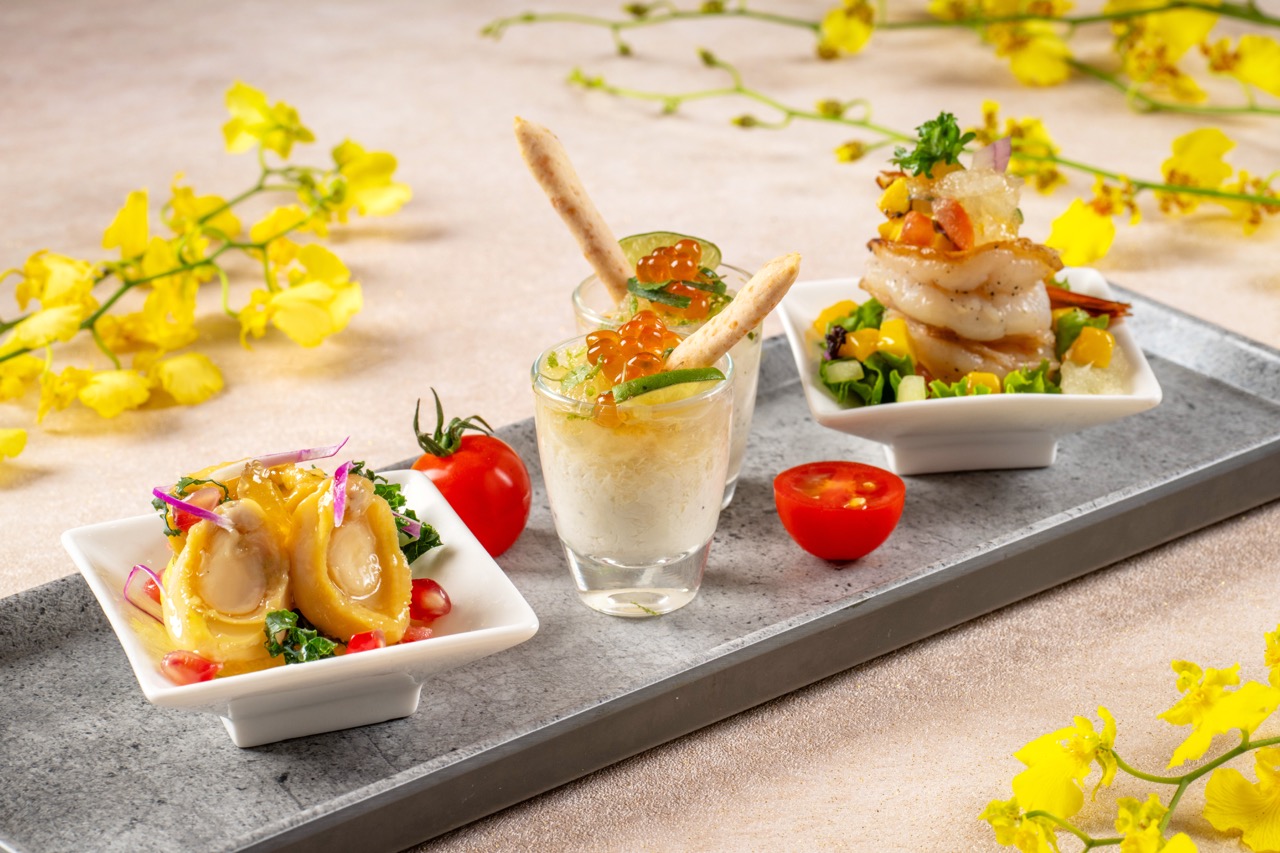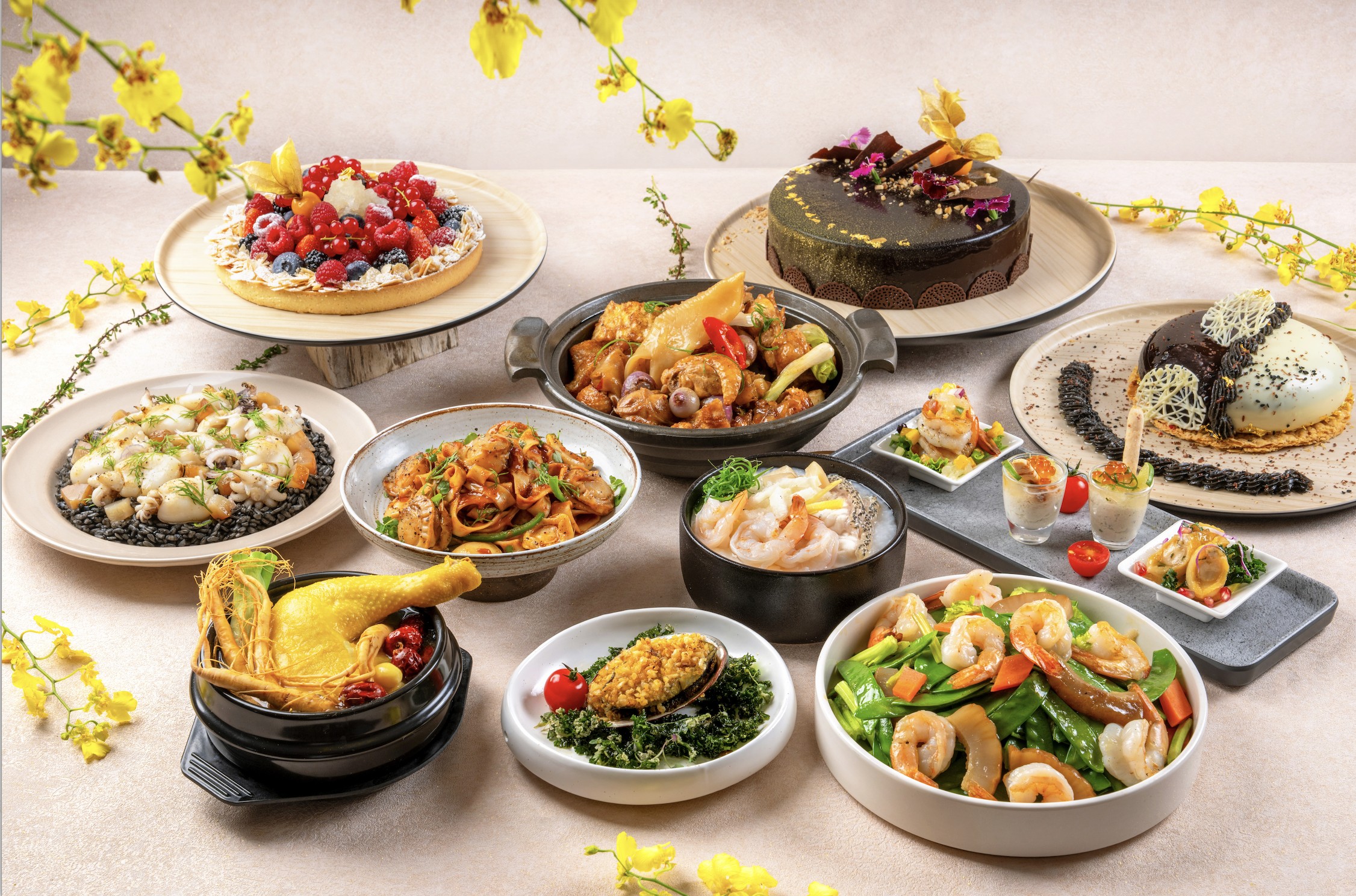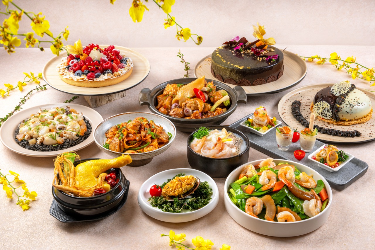 精選包括賀年魚生撈起、上湯龍蝦蟹肉伊麵,以及每位成人尊享佛跳牆一客。多款節日甜品登場,如柑橘朱古力蛋糕、草莓紅桑子蛋糕、車厘子白朱古力蛋糕、黑白芝麻蛋糕及紅豆椰汁糕,讓您細味甜蜜,共慶新歲喜悅!