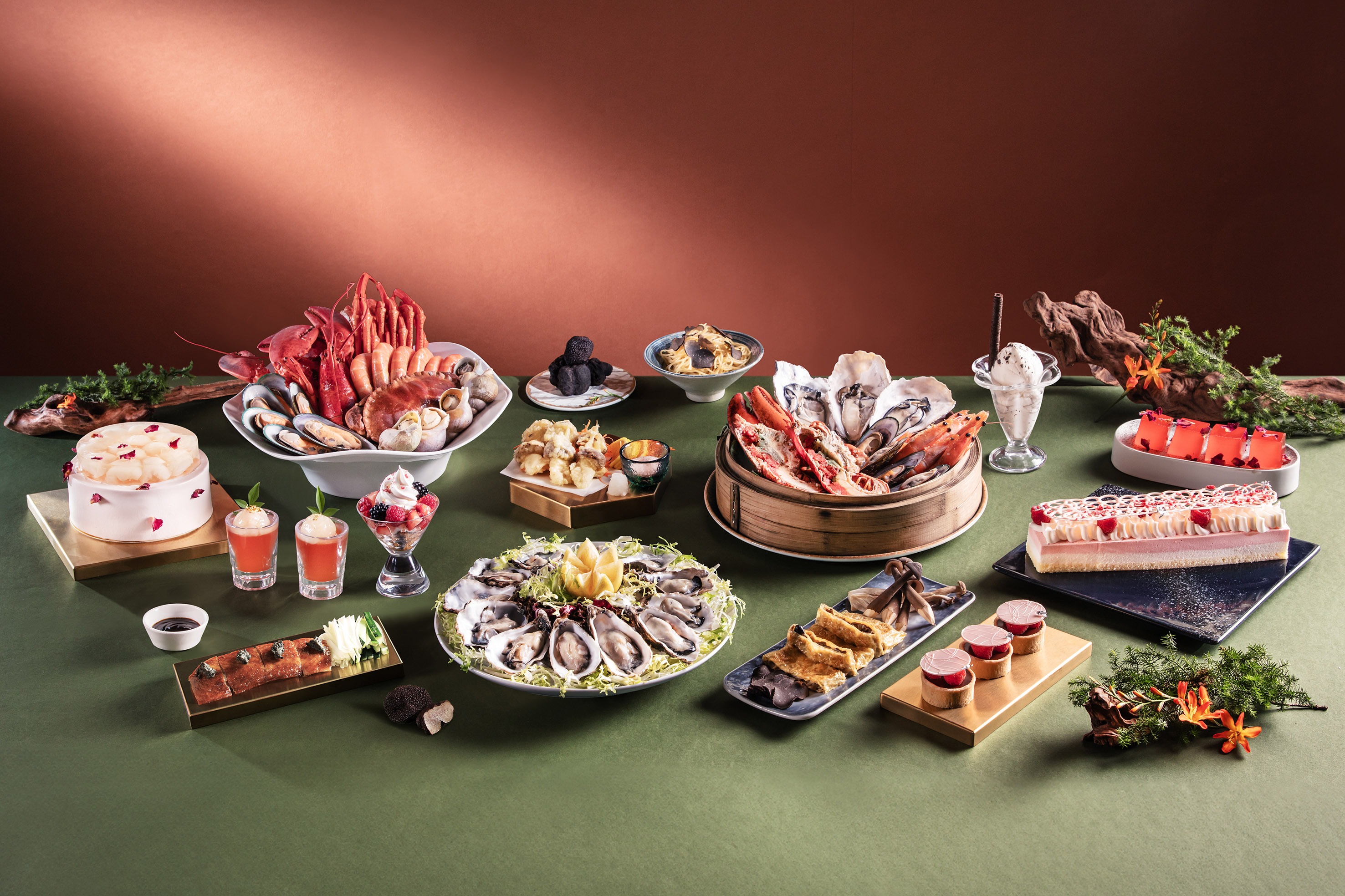 精選美食: 帶子刺身、冰鎮扇貝、蒸生蠔、各式烤肉(包括燒頂級燒西冷及香草三文魚)、鐵板燒主菜(包括鴨肝)、日式天婦羅及炸物、爐端燒、兒童食物(DIY熱狗、炸雞及炸魚薯條)、即製爆谷及班戟、無限暢飲飲品—氣泡酒、紅白餐酒、精選雞尾酒、汽水、果汁及港式奶茶。