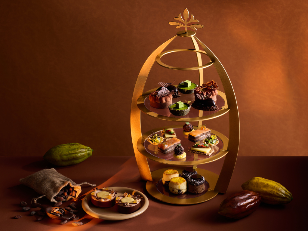 香港麗思卡爾頓酒店聯乘頂級法國朱古力品牌 Valrhona,由香港麗思卡爾頓酒店及香港W酒店行政糕點總廚顏健邦,與 Valrhona 朱古力大師 Guillaume Lopvet 四手聯乘,向朱古力工藝致敬。每一款甜點均選用 Valrhona 單一產地朱古力入饌,從 Hukambi 53% 的果香明亮,到 Guanaja 70% 的濃醇深邃,層層演繹朱古力的多種風貌。鹹點亦巧妙融入可可元素,讓朱古力的魅力貫穿全場。一趟沉浸於朱古力世界的味蕾旅程。