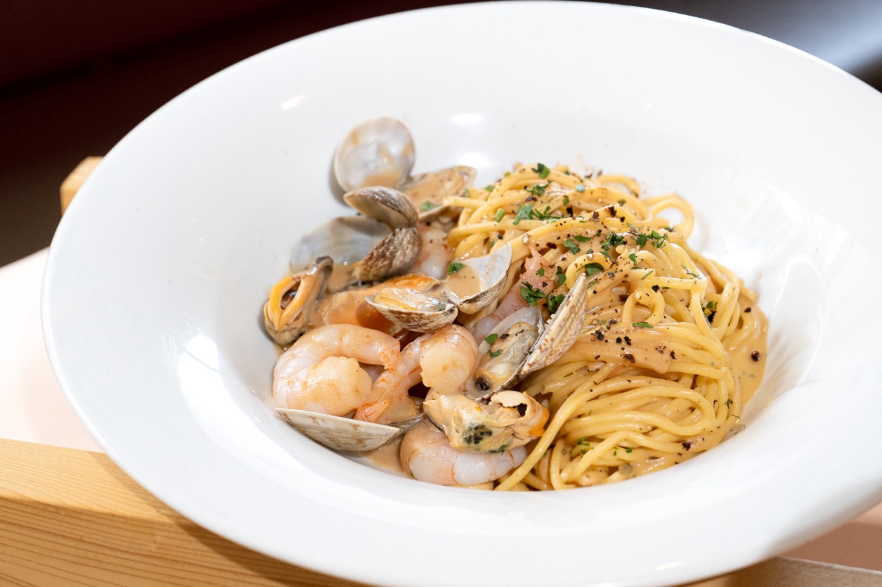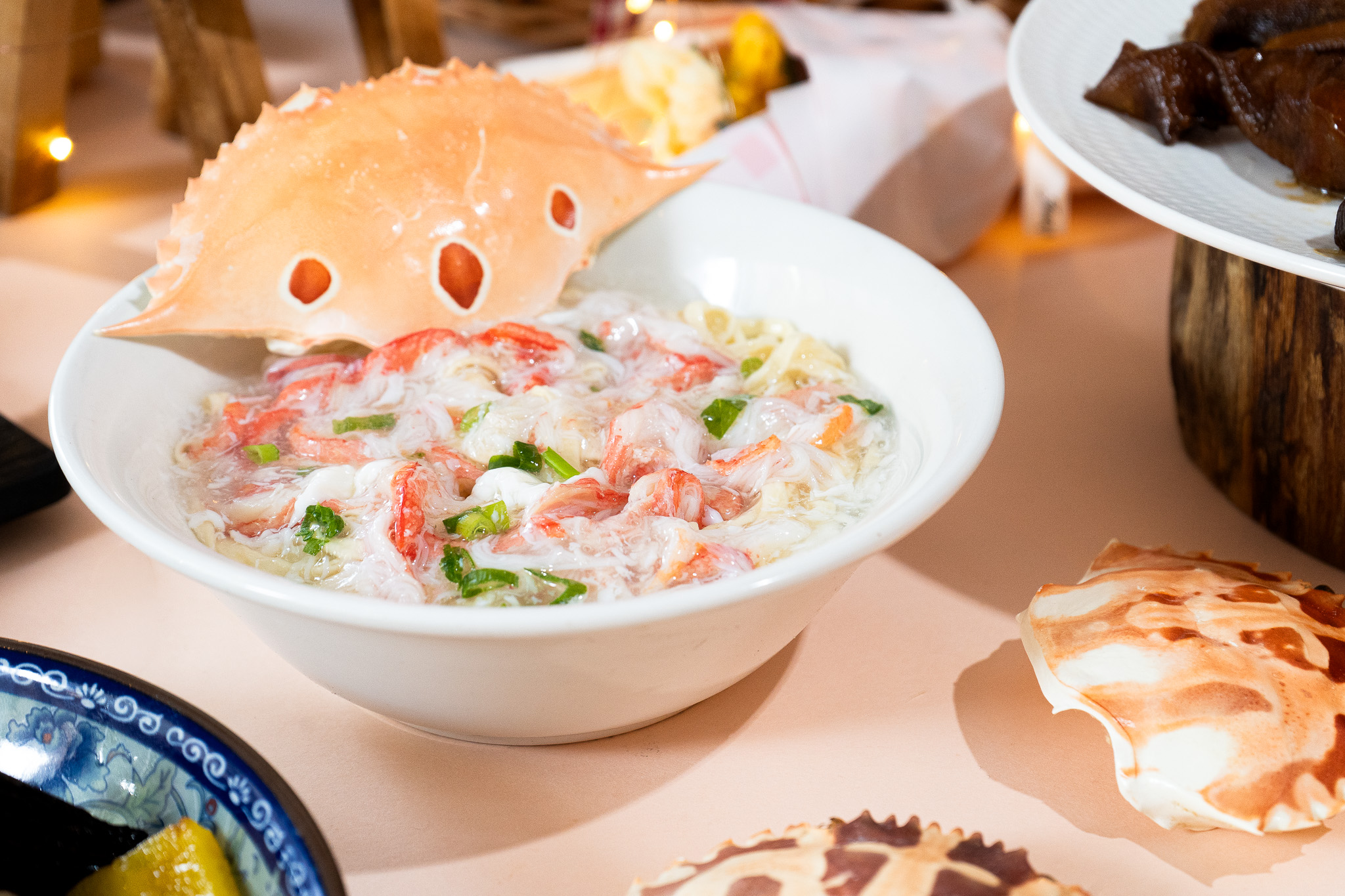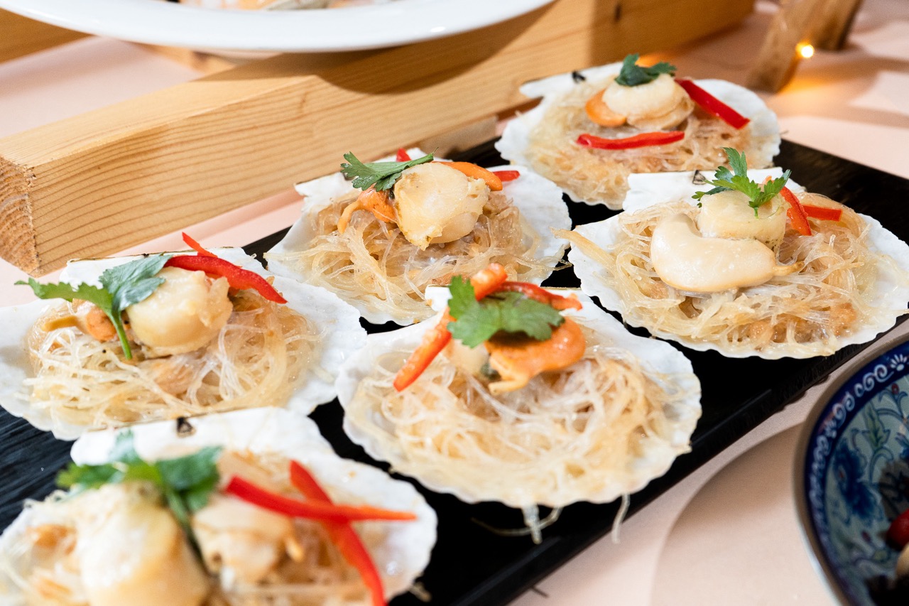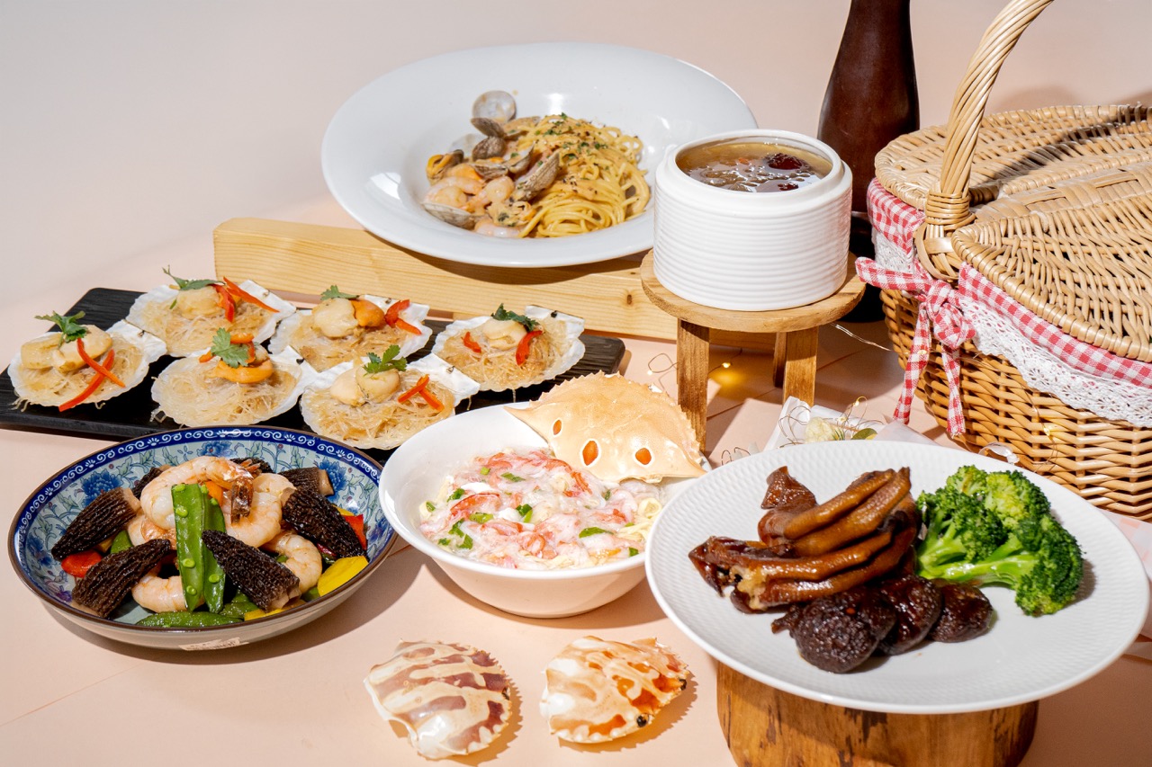 • 酥皮海鮮盒 酥脆千層酥盒內盛滿鮮蝦、帶子及魷魚的奶油海鮮餡,呈現奢華優雅的復古風味。