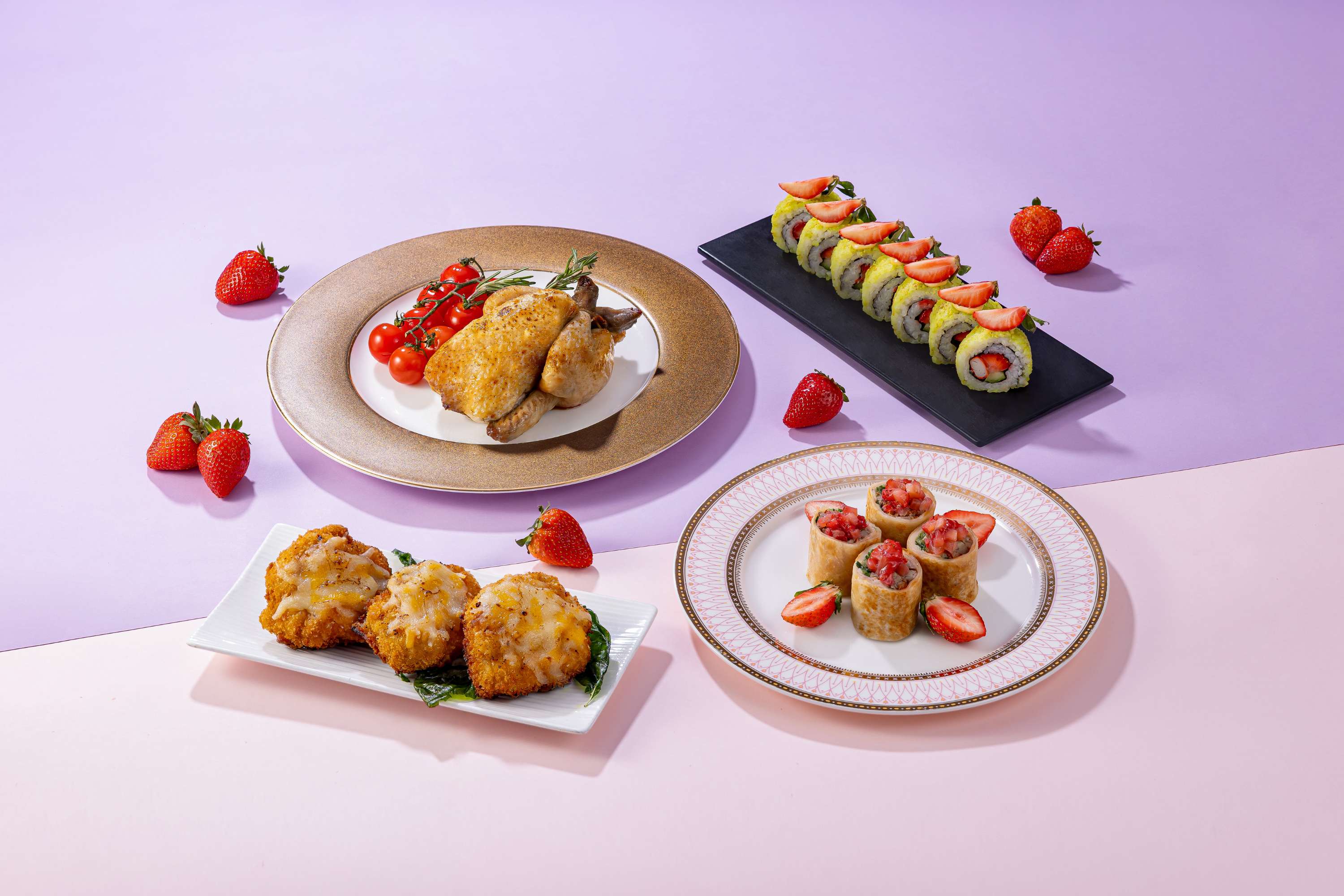 以繽紛莓香迎接新一年, 士多啤梨與雜莓化身主角, 精緻美饌綻放酸甜果香, 每一口都充滿驚喜 推介美食:蟹柳青瓜開心果士多啤梨壽司卷,米杜士堡芝士炸雞,藍莓烤鴨墨西哥卷, 迷迭香烤春雞,士多啤梨梳乎厘,藍莓芝士蛋糕,士多啤梨忌廉三重奏,迷你鮮果撻,咖啡或茶