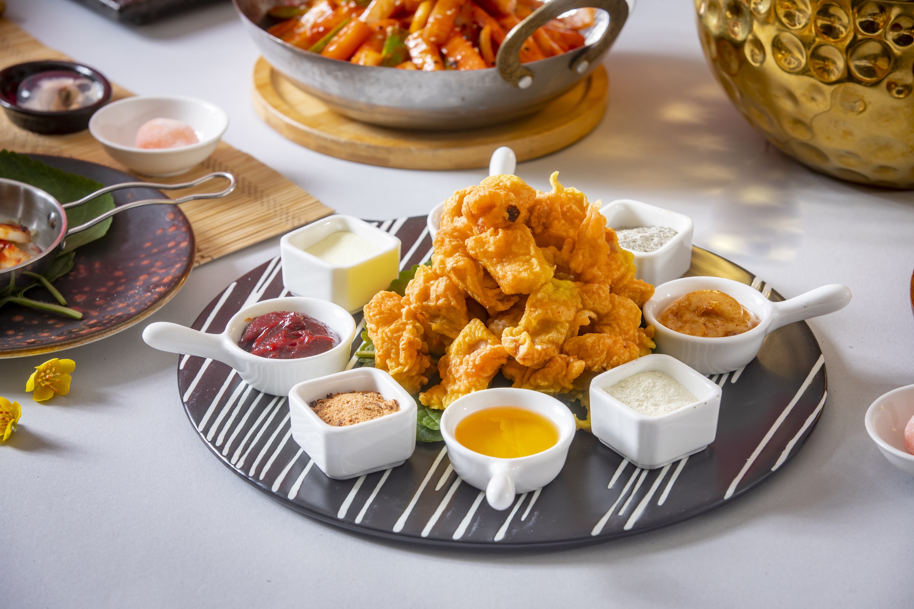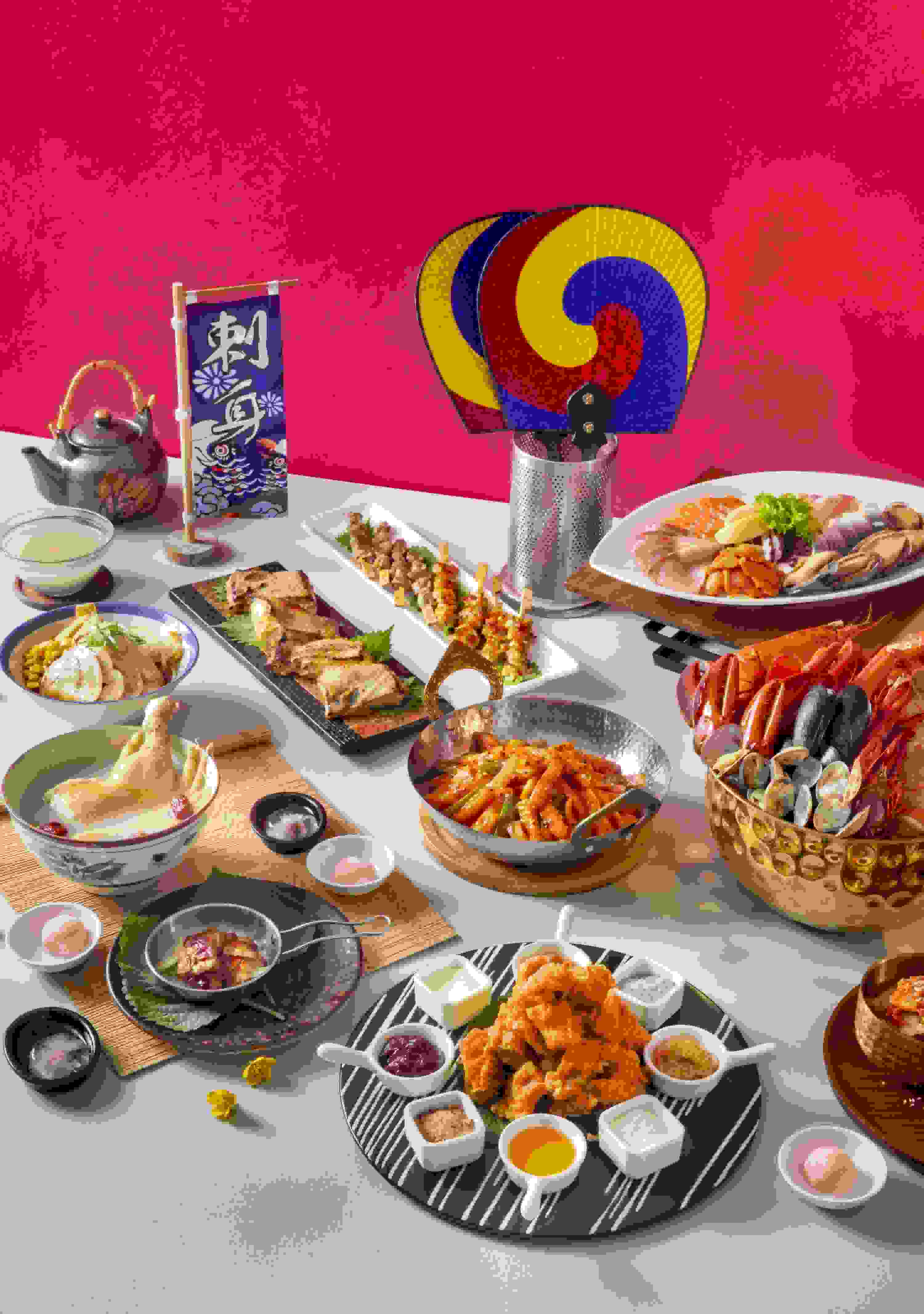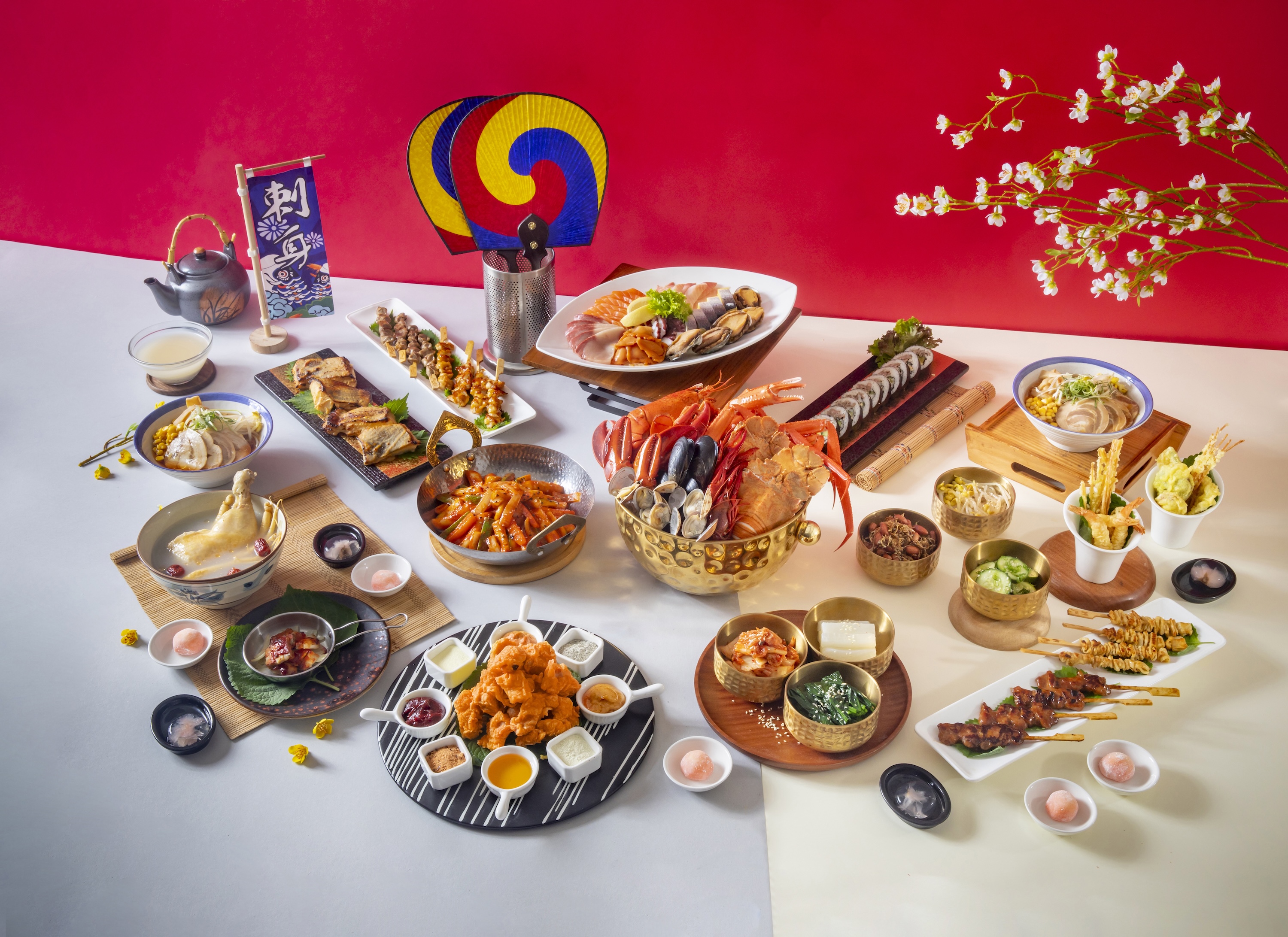 於再臨閣體驗全新主題自助餐,品嚐超過20款日韓特色美饌,包括燉人參雞湯、韓式炸雞、韓式五花腩、自家製韓式醃菜、日式串燒、日式拉麵及味噌燒比目魚等。此外,還有人氣冰鎮海鮮 、各式特色沙律、壽司刺身、烤肉及 Häagen-Dazs 雪糕等多款美食可供選擇,絕對不容錯過!