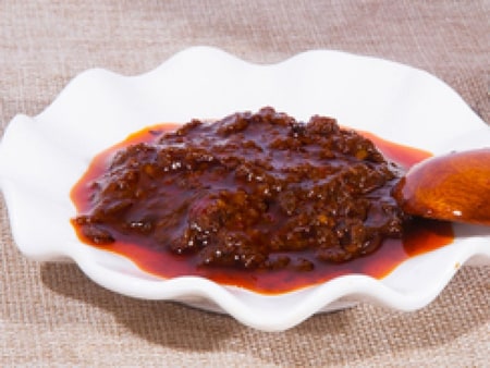 沙爹汁、泰式酸辣汁、炸蒜蓉、生蒜蓉、秘製辣椒油、蔥花、辣椒粒、沙薑粒、青檸粒