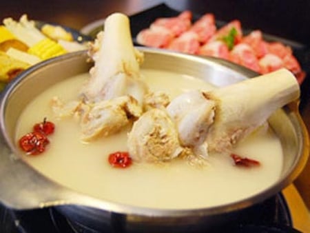 豬骨、雞殻、洋蔥 配以上素高湯而成