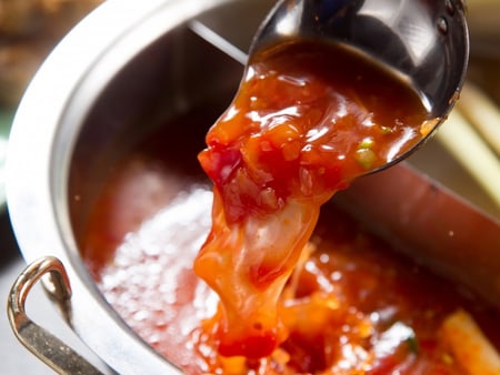 打碎蕃茄、茄蓉 配上素高湯而成香甜蕃茄濃湯,客人需要自行加入1200ml水